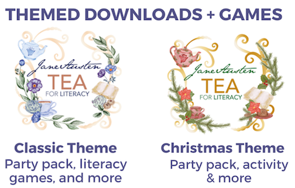 Sign up for your party pack, with exclusive Jane Austen family recipes, games and activities, hosting guide, editable templates, playlist, and more... everything you need to host a Jane Austen Tea for Literacy.