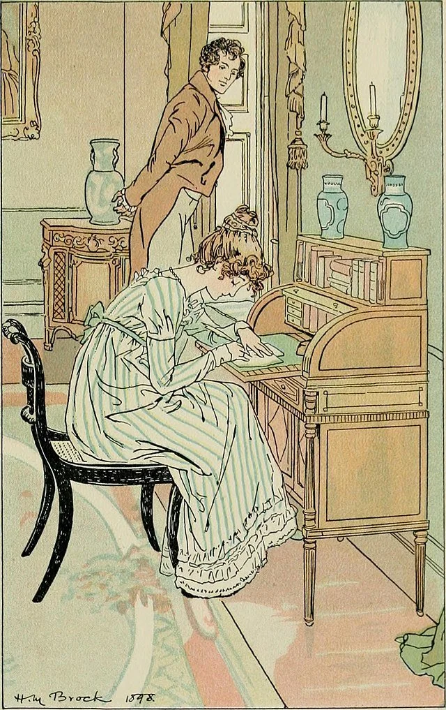 In Austen novels, we see grand declarations of love or acts of service that makes our hearts skip a beat. Their idea of love seemed so certain and selfless. One of the most famous examples is when Darcy comes to the Bennet’s aid and not only saves the family from ruin after Lydia’s elopement, but also helps to reconcile Jane and Mr. Bingley. If that was not enough, he then proceeds to make one of the sincerest declarations of love to Elizabeth.
